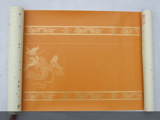 《真金手繪瓷青盤龍粉蠟箋》